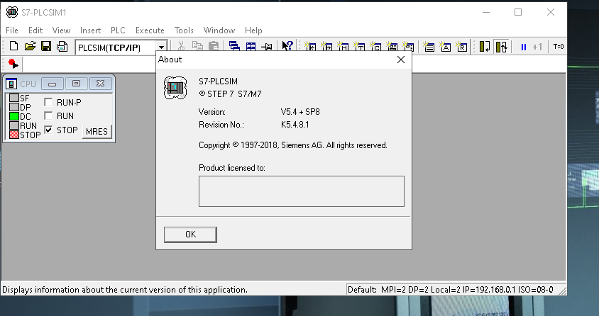 PLCSIM V18 SP2