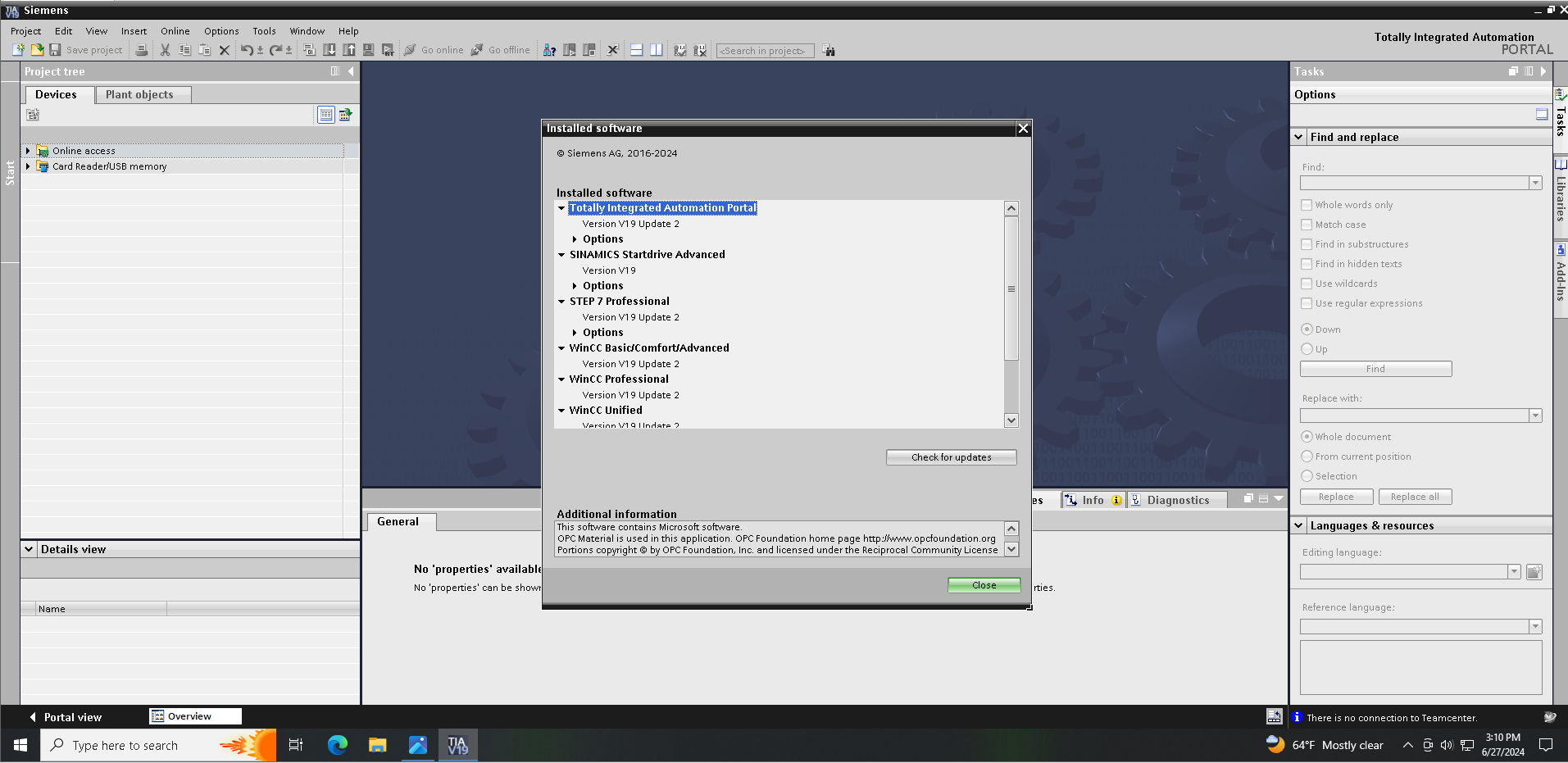TIA Portal TeamCenter Gateway V19 update 3